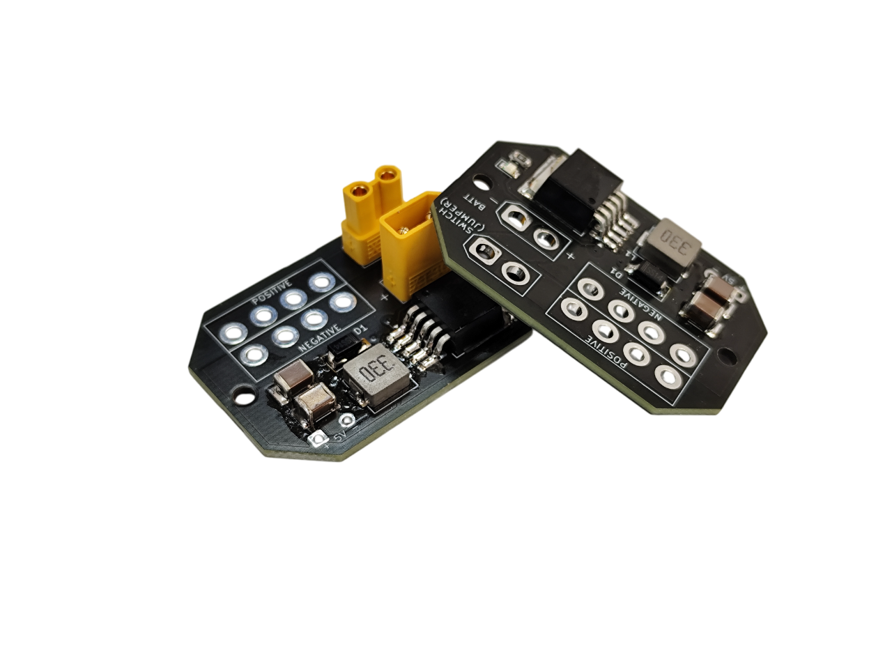 Com conector XT30 soldado (entrada + saída para bateria/chave geral).